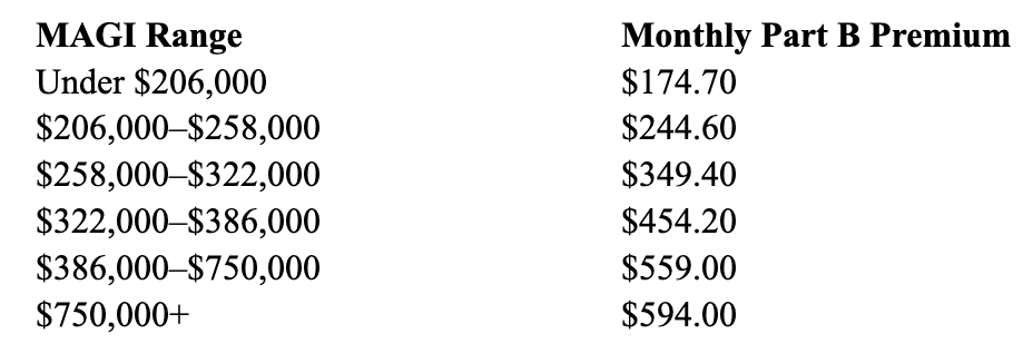 Note: IRMAA is determined using your income from two years prior. So your 2025 Medicare premiums are based on your 2023 tax return.